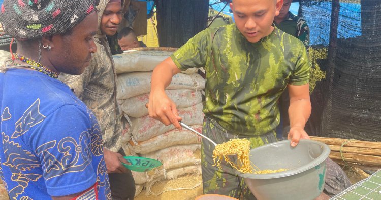 INTAN JAYA - Kepedulian terhadap masyarakat terus ditunjukkan Satgas Pamtas RI–PNG Mobile Yonif 113/Jaya Sakti. Melalui aksi sosial, prajurit membagikan makanan siap saji kepada warga Kampung Engganengga, Distrik Homeyo, Kabupaten Intan Jaya, Papua Tengah, Rabu (22/4/2026).